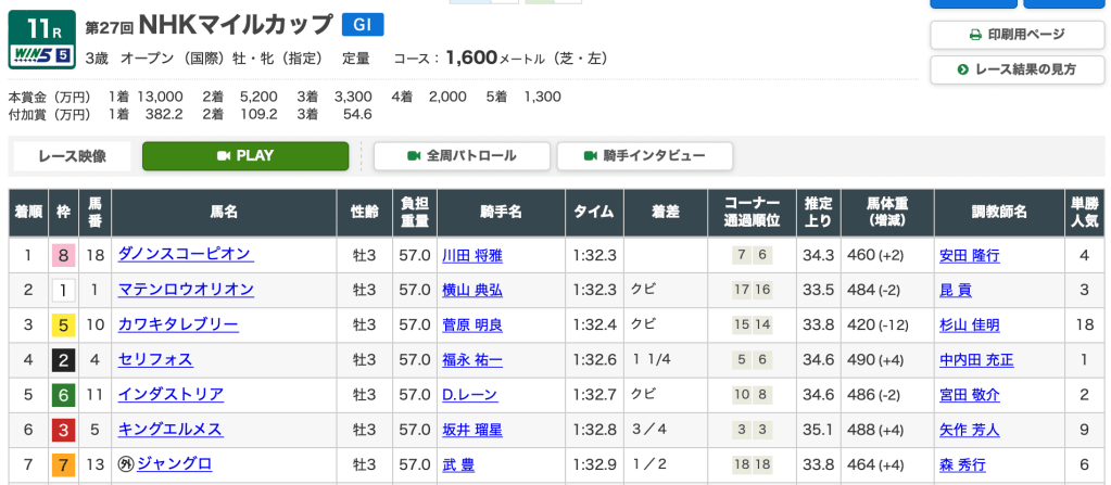 | G1 NHKマイルカップ | -7,300円 | 3連複 |