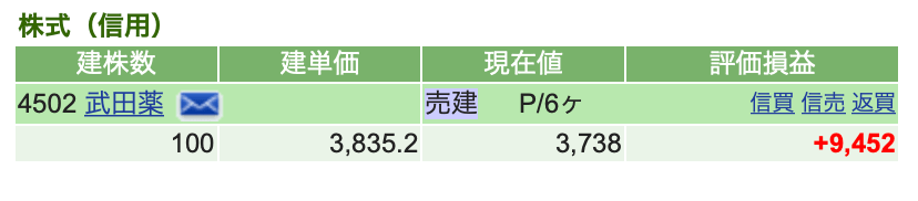 ①:売りトレンドだと思い信用売(300株)