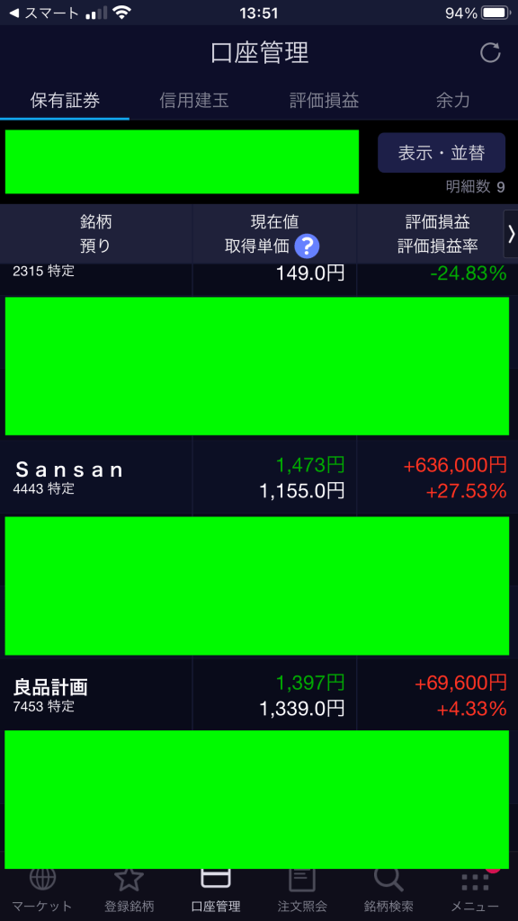 sansan(4443)さんと良品計画(7453)さんを売りました。