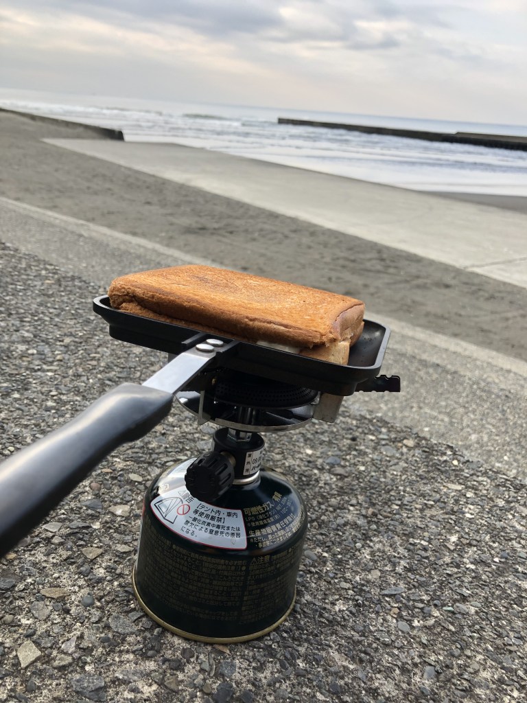 海を眺めながらのホットサンドとコーヒーは格別でした。