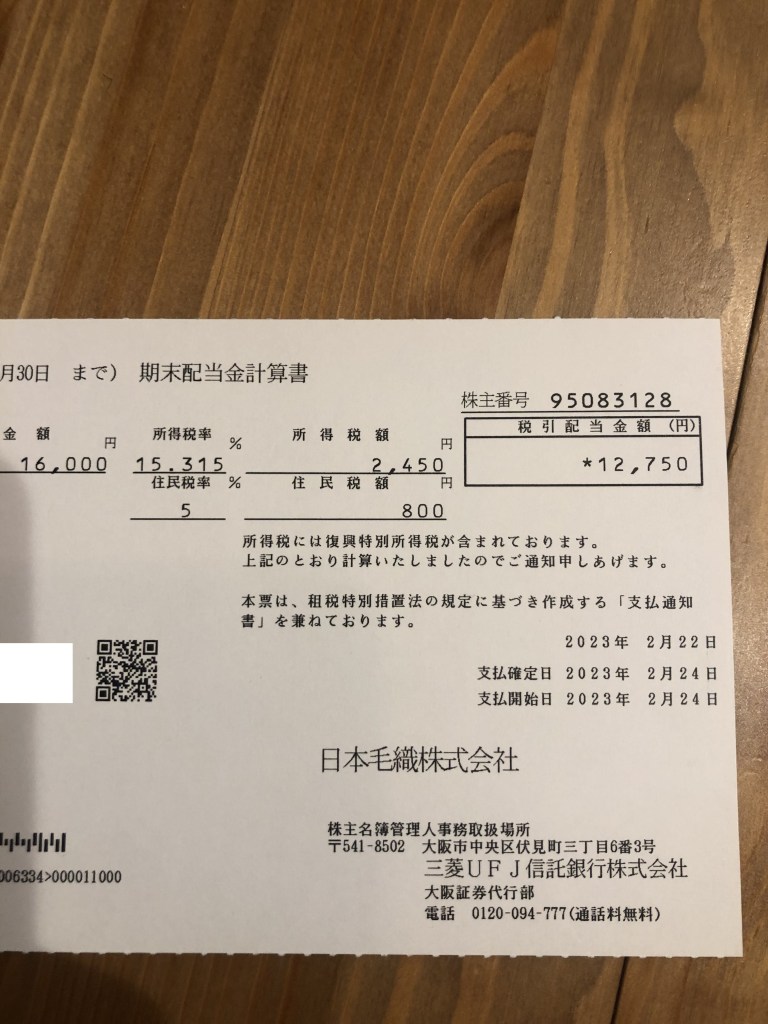 2月末と3月の頭に配当を頂きました。