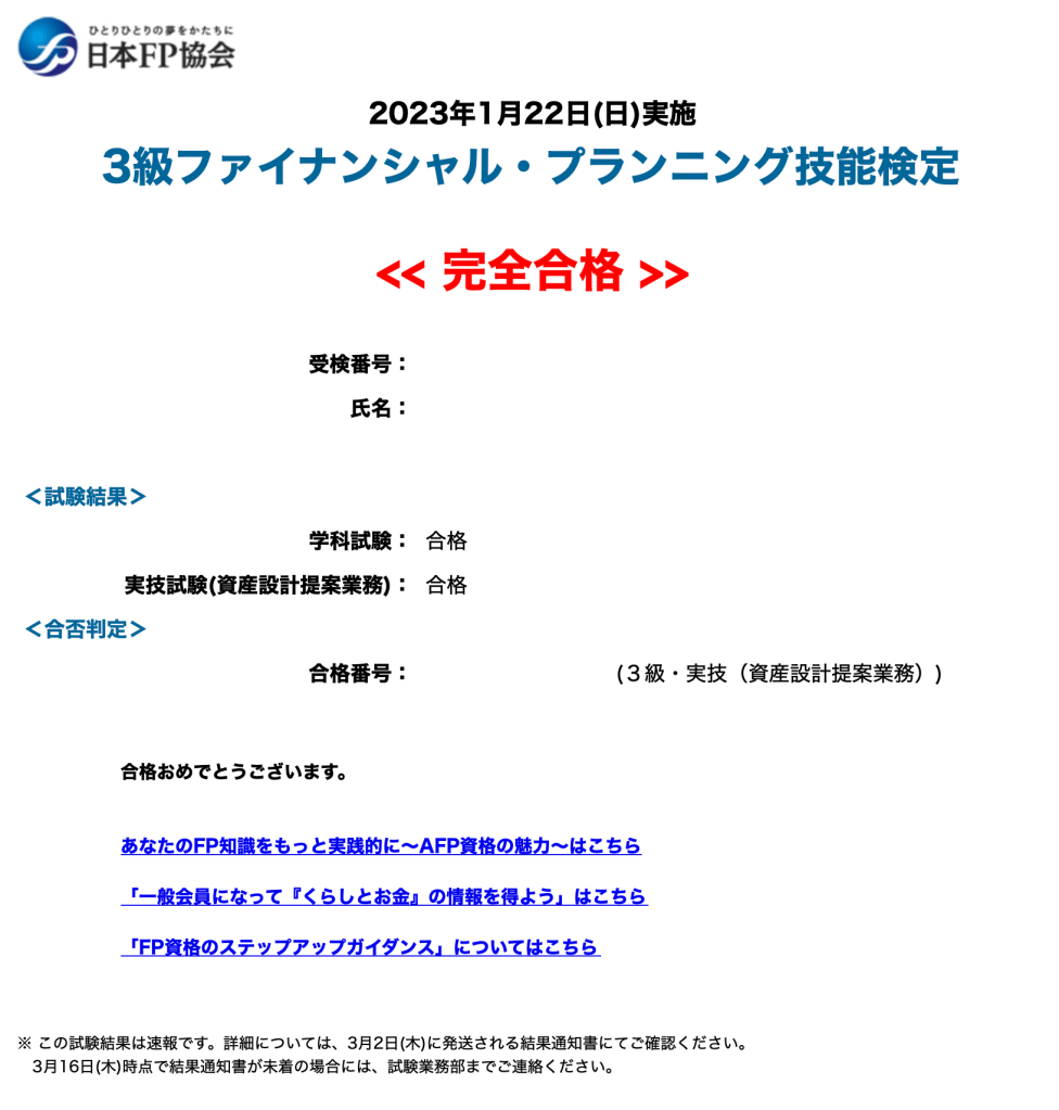 どうせ合格していないだろうと思ってました。(確実に取れる問題を落としていたことを受験後に気がつきましたし)