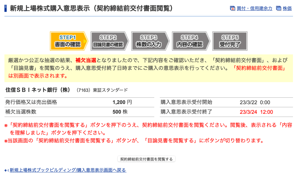 何が共あれ、明日の正午までに購入意思が必要とのことなので、とりあえず500株(60万円)の購入意思を表明させて頂きました。