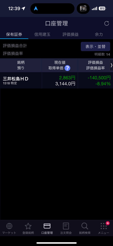 もうちょい前に損切り出来た気もしますが、今日は8.9%でマイナスで終われたことを誇りたい。
