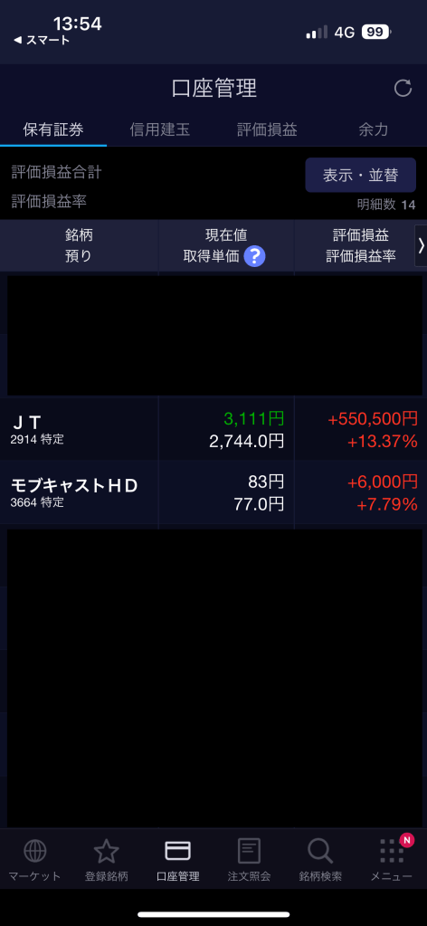 また、モブキャストHDさん(3664)は上がらないので一旦処分です。