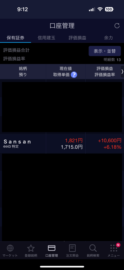 ついでに買い戻したSansan(4443)さんもチャートが拮抗していて不安になったので一旦リリースです。