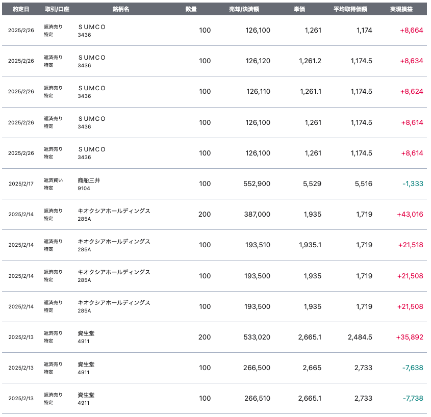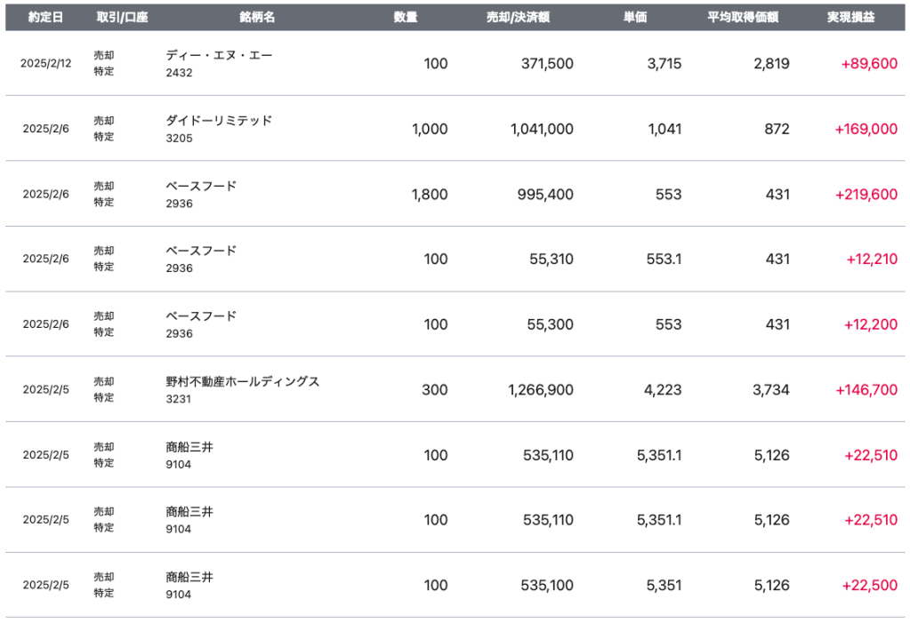 2月は半導体関連の銘柄(日本銘柄)が安売りされていた様だったので、購入し、利益確定することが出来ました。