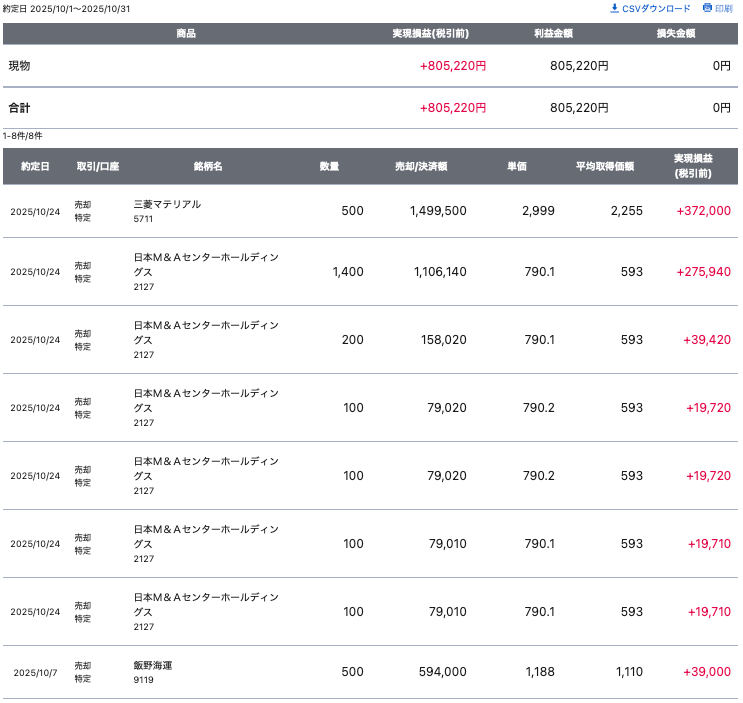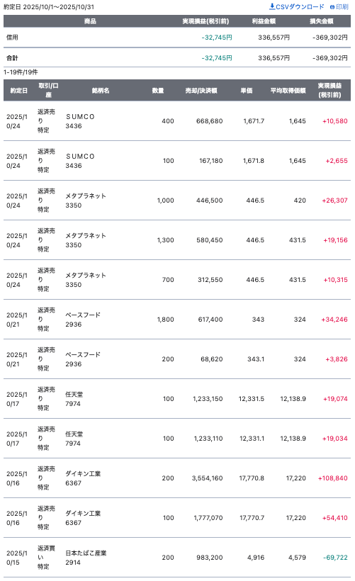 現物の利益に支えれたこともあり、収益合計も+で10月を終えることを出来ました。